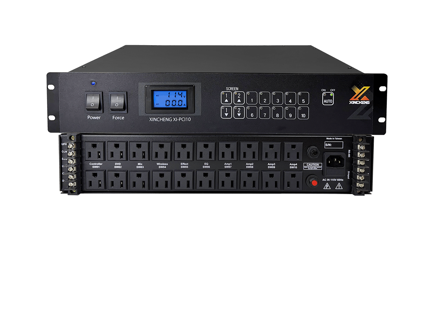 具有20孔電源插座,系統總電源開關控制