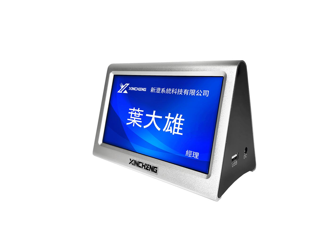 雙面7吋液晶電子桌牌 XINCHENG XI-DT7 材質:鋁合金 作業系統:Android 觸控:10點電容式觸控螢幕 通訊方式:有線、無線 安裝方式:桌上型 外觀尺寸:177 × 90 × 120 mm(長 × 寬 × 高) 供電方式:內建 10000mAh 鋰電池、有線 POE 12V 供電 產品規格以實物原廠公佈資訊為準,規格異動恕不另行通知。